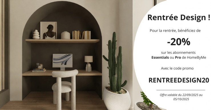 Bénéficiez de 20% de réduction pour toute nouvelle souscription à un abonnement mensuel Essentials ou Pro et profitez de l’expérience complète HomeByMe.